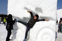Visitors pose for their souvenir pictures in front of the sign for Pyeongchang