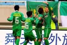 Beijing in green and the guests kept their opponents in check with a strong defensive effort. No goals were scored in the first half.