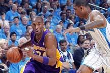 But Kobe played the starring role. He scored 24 on the night. Bryant's triple stretched the Lakers cushion to double digits.