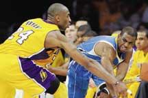 In Los Angeles, the home team Lakers pushed the New Orleans Hornets to the brink of playoff elimination, moving ahead 3-2 in the series.