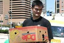 People dropped-off their abandoned devices and electric parts for recycling. Yao brought some NBA personal star power to the happening.