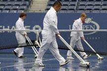 Persistent showers delayed the start of play at Flushing Meadows for almost three hours and the prediction of more storms convinced tournament officials to cancel the entire day's play. The US Tennis Association announced that because of unfavorable forecasts, they would have to cancel both the day and night sessions, hoping to resume play at 11:00 local time on Wednesday. Tuesday's schedule included the remaining four men's fourth-round clashes, featuring Rafael Nadal and Andy Murray, and the first two women's quarter-finals, while Wednesday's initial schedule featured two men's and two men's quarter-finals.