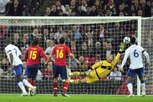 Spanish striker David Villa put a shot into the side netting in the 57th minute and then hit the post with a long-range blast 16 minutes later. England survived to claim a memorable and unlikely 1-0 win after three straight defeats to the Spaniards. Its the sides first victory over Spain since 2001.